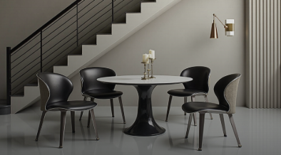 Stoelen, tafels, lampen, trapleuningen en designobjecten.